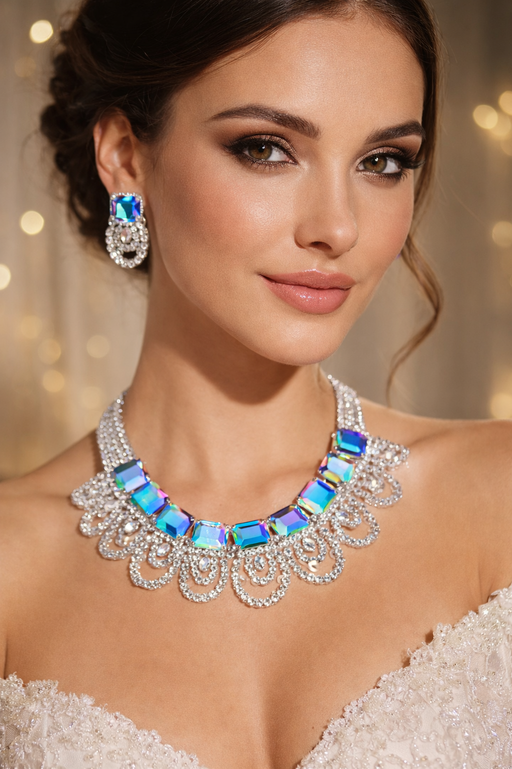 Upgrade your jewellery collection with this Premium Rainbow Crystal Necklace Set, crafted to add a luxurious sparkle to your party and wedding looks. Designed with shimmering multicolor stones and a classy silver finish, this set is perfect for modern women who love elegant and statement accessories.